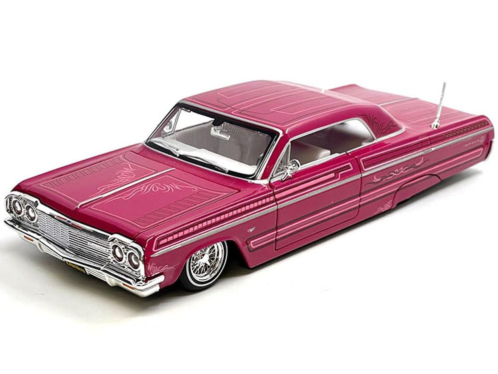 Be the first to review “1964 Chevy Impala SS Lowrider Pink with Graphics and White Interior Lowriders Design Series 1/26 Diecast Model Car 32547PK”