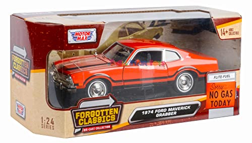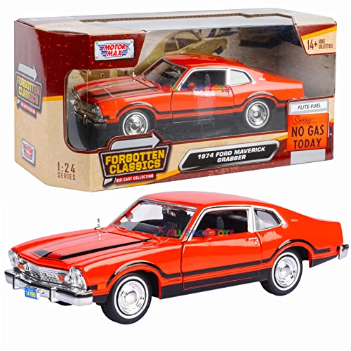 • Licensed Product 1/24 scale Collectible Model measuring approx 7.5x3x2.75 inches Made of diecast metal with plastic parts, and rubber tires Opening doors and hood Detailed Interior and Engine bay Pre-assembled, not a building kit New in window box 1973 Oil Crisis embargo caused gasoline price to soar and prompted Americans to support smaller cars, resulting in a combined sales of over 54 million units of the 4 more popular ones – AMC Gremlin, Chevy Vega, Ford Pinto and Ford Maverick.