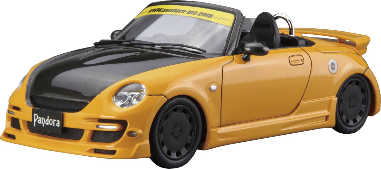 • An import from Aoshima 2002 Daihatsu Copen features the full aero treatment by Pandora Including a front bumper spoiler, rear bumper spoiler, side step, and rear spoiler Window frame masking stickers From Aoshima Bunka Kyozai Co.