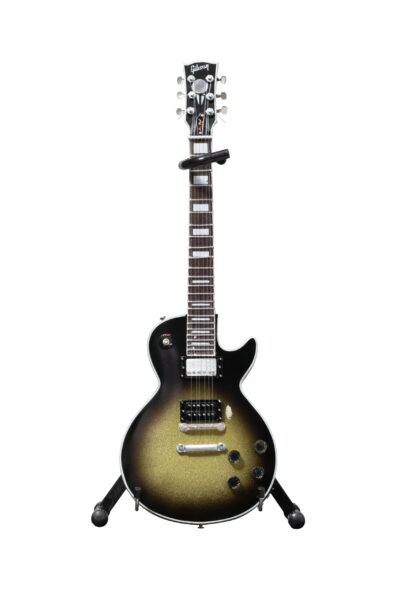 • Handcrafted from solid wood and designed with incredible detail Includes a high quality adjustable mini guitar stand Mini guitar gift box designed to look like a guitar case, is included Perfect guitar player gift Artwork and hardware is detailed by hand, then polished to a beautiful finish Overview Adam Jones Tool 1979 Gibson Les Paul Custom Antique Silverburst Mini Guitar Replica Collectible AXE HEAVEN® is proud to present an incredible officially licensed miniature guitar collection with Gibson and Adam Jones.