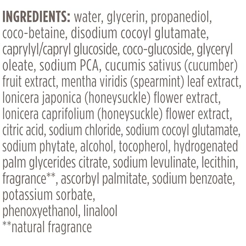 • FOAMING FACE CLEANSER: Burt’s Bees Refreshing Foaming Cleanser gently refreshes and awakens skin with nourishing cucumber extract and an invigorating cucumber mint fragrance NATURAL FACE WASH: From a leader in natural skin care, this face wash’s 99% natural origin formula is formulated without parabens, phthalates or petrolatum FACE WASH FOR WOMEN OR MEN: Dermatologist tested, this mint and cucumber women’s or men’s face wash removes dirt, oil and makeup without stripping skin or leaving it feeling overly dry NO GREASY RESIDUE: Burt’s Bees Refreshing face wash is made in the USA with global ingredients; lightweight formula forms a creamy lather and rinses completely BURT’S BEES SKIN CARE: Use Burt’s Bees foaming facial cleanser with your favorite Burt’s Bees moisturizer as part of your daily face care routine for naturally soft and healthy-looking skin Burt’s Bees has paired two of natures most refreshing ingredients cucumber and mint — into one foaming face wash that refreshes and awakens skin with nourishing cucumber extract and an invigorating cucumber mint scent.