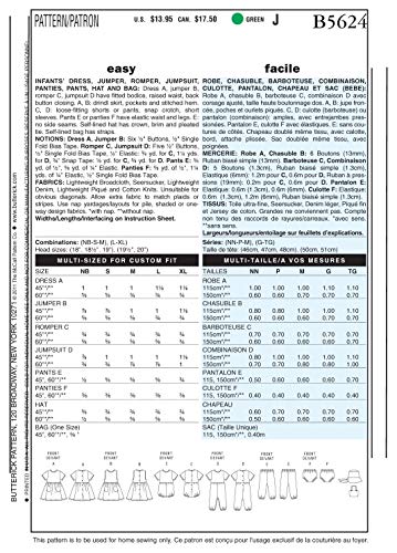 • INFANTS’ DRESS, JUMPER, ROMPER, JUMPSUIT, PANTIES, PANTS, HAT AND BAG: Dress A, jumper B, romper C, jumpsuit D have fitted bodice, raised waist, back button closing.