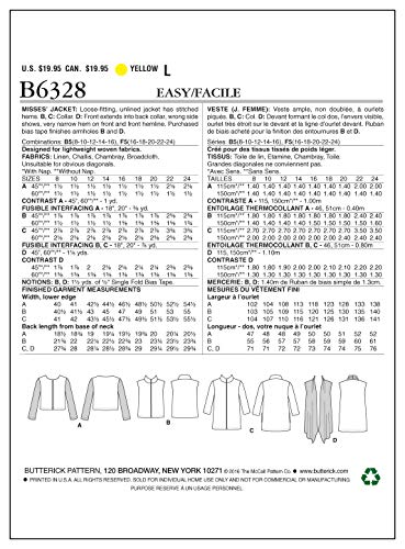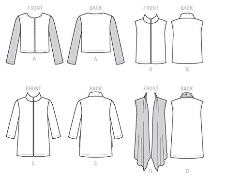 • Size: F5 (16-18-20-22-24) Includes pattern pieces and sewing instructions Made by Butterick Patterns Copyright 2016 Printed in the U.S.A MISSES’ jacket: loose-fitting, unlined, open-front jacket and vest have stitched hems.