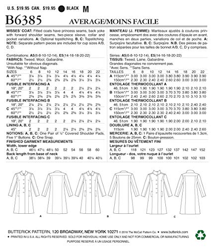 • Sew a winter coat with round collar, pointed collar, or funnel neck designed by Lisette Sewing pattern includes custom cup sizes for a, b, c, and d For (14-16-18-20-22) bust 36- 44Waist 28- 37Hips 38- 46 Paper pattern made in usa Fitted coats have princess seams, back yoke with forward shoulder seams, two-piece sleeve, collar and pocket variations.