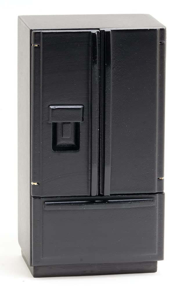 • Dollhouse Miniature Black Refrigerator with Freezer on Bottom, 1:12 Scale