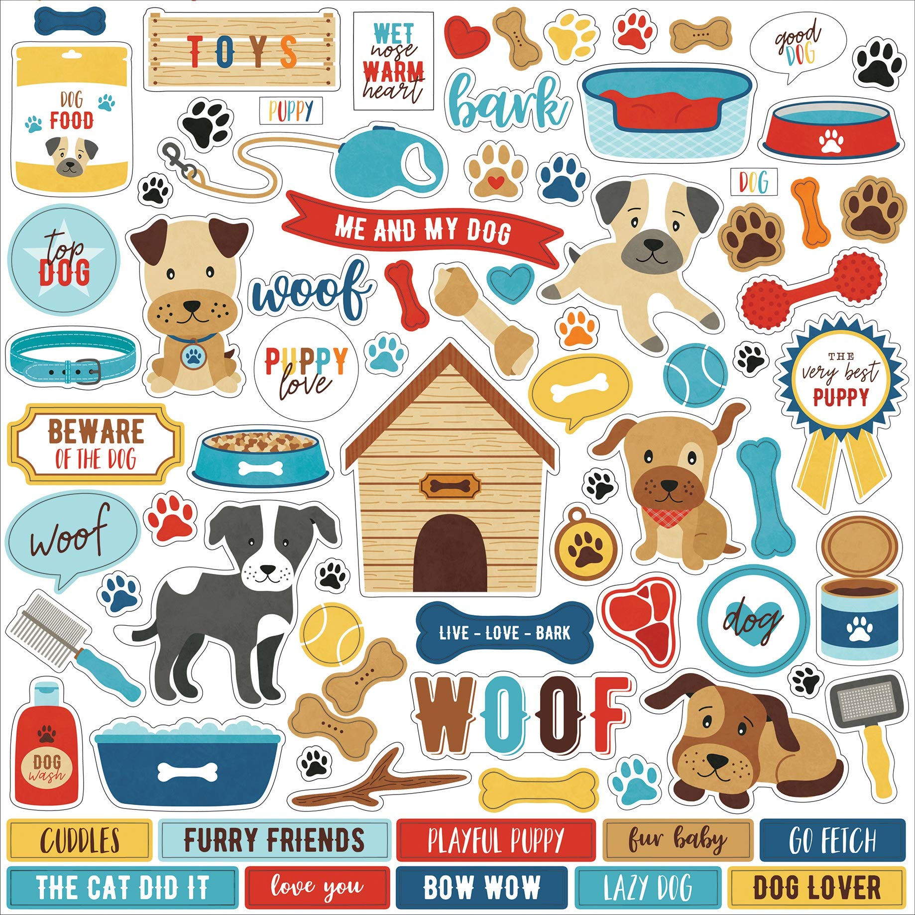 • Designs include phrases, banners, dogs, bones, balls, food dish, dog house, toys, and more.