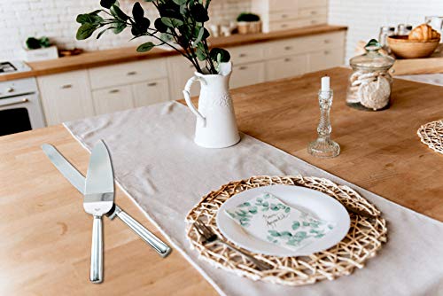 • The second piece is a cake knife with a silver stainless steel serrated blade Wedding Cake Knife and Server Set: Both the cake knife and server have solid poly resin handles plated in a metallic silver finish Size of the Cake Server: 10″ x 2″ Size of the Cake Knife: 12 1/4″ x 1″ Wedding Favor: The wedding cake knife and server set comes packaged in a white bottom box with a silver Hampton Link design.