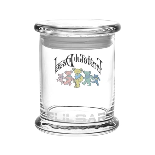 • Grateful Dead x Pulsar stash jar Glass pop-top lid Bear Parade glass decal Officially licensed These Grateful Dead x Pulsar Pop Top Jars are perfect for storing medicine, spare change, and more!