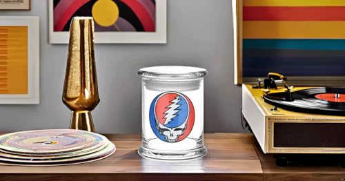 • Grateful Dead x Pulsar stash jar Glass pop-top lid Steal Your Face glass decal Officially licensed These Grateful Dead x Pulsar Pop Top Jars are perfect for storing medicine, spare change, and more!