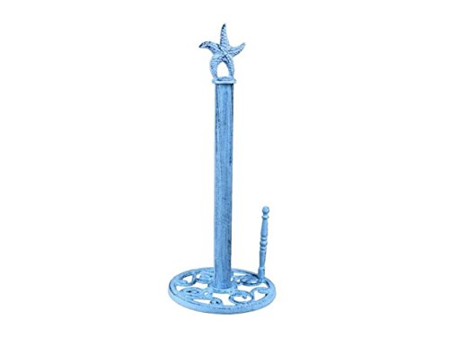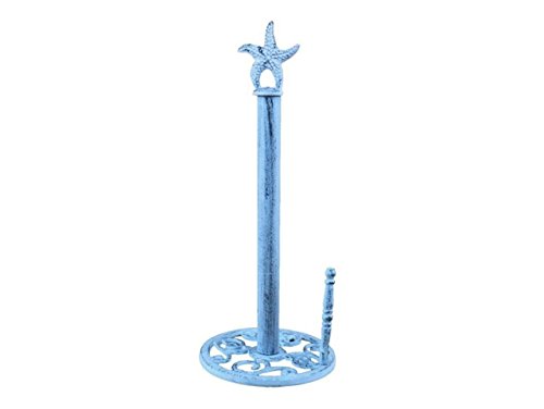 • Functional towel holder Solid and heavy handcrafted from cast iron Perfect gift for nautical enthusiast Shop Amazon for all our products over 3000 unique nautical items available Buy factory direct all items designed and manufactured by us Handcrafted Nautical Decor This rustic dark blue whitewashed cast iron starfish paper towel holder 15is perfect for any nautical inspired kitchen.