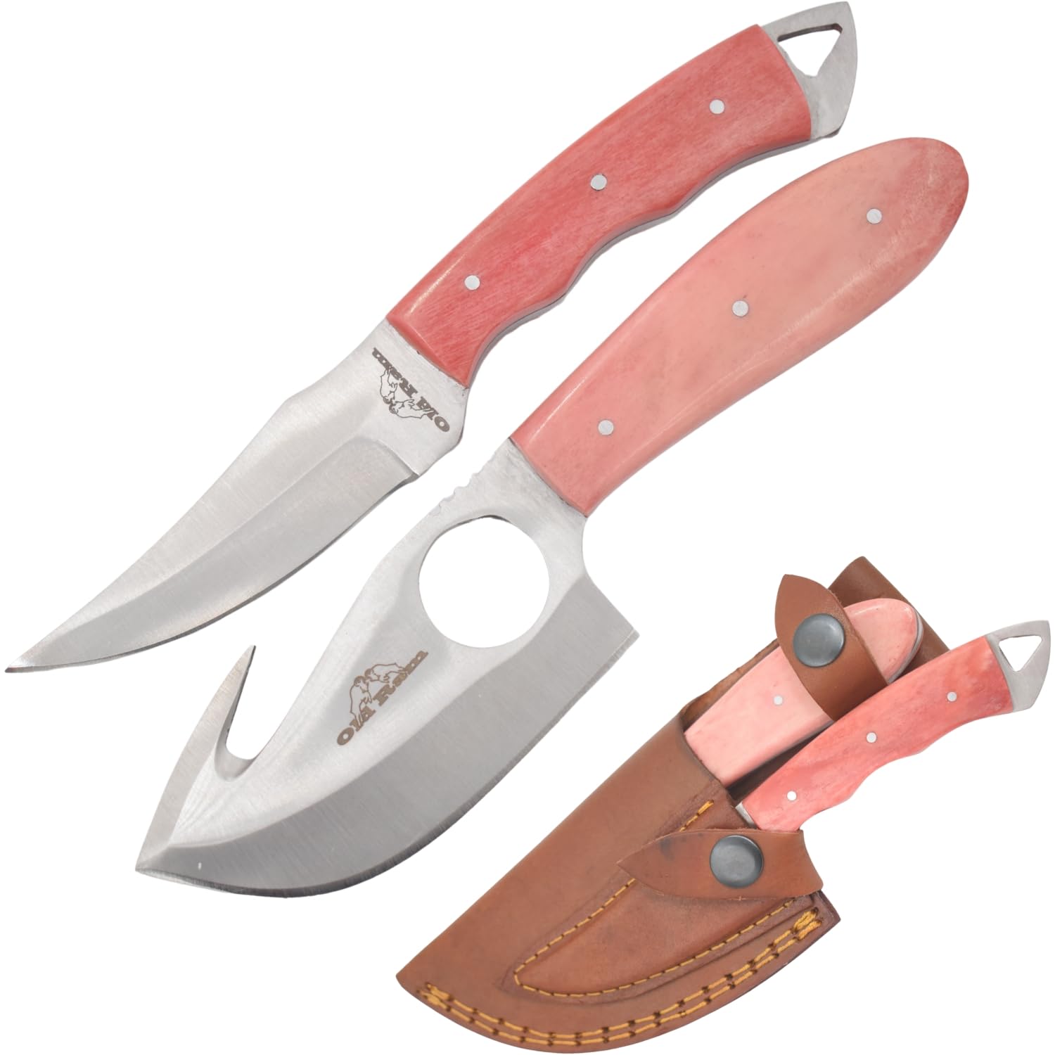 Handmade 2-Piece Camping Hunting Outdoor Skinner Knife Set (Pink Bone)