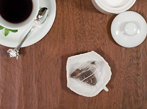 • HIC Kitchen’s Fine Porcelain Tea Bag Caddy for holding tea bags, tea infusers, beverage stirrers, spoons and other flatware for less mess Made from fine-white porcelain; lead and cadmium free; measures 3.625 x 3 x 1-inches Great for serving sugar lumps, lemon wedges, and mint leaves, holding votive candles, and as decorative kitchen accessories Clever gifts for kids and adults, tea lovers, at-home baristas, and hostess gifts; complements all teacups and saucers and tea sets Durable; dishwasher safe for easy cleanup HIC Kitchen’s Fine Porcelain Tea Caddy holds and catches drips from tea bags and spoons for less mess at the table.