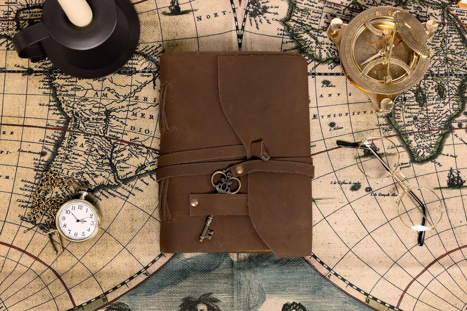 Authentic Vintage Aesthetic: Wrapped in genuine, dark-toned leather with an antique-finish key and rustic leather straps to keep your secrets secure.