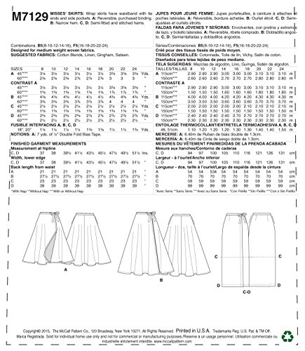 • Size: B5 (8-10-12-14-16) Includes pattern pieces and sewing instructions Made by McCall’s Patterns Copyright 2015 Printed in the U.S.A MISSES’ SKIRTS: Wrap skirts have waistband with tie ends and side pockets.