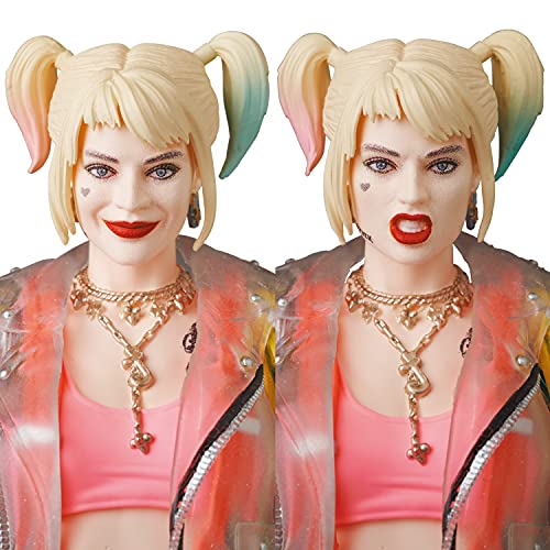 • A Medicom import From the movie Birds of Prey Figure of Harley Quinn wearing her impressive clear jacket and Caution Tape sleeves Two head parts included, as well as egg sandwich and hammer parts Movable figure stand included From the movie Birds of Prey comes a MAFEX action figure of Harley Quinn wearing her impressive clear jacket and Caution Tape sleeves!
