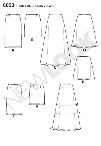 • Misses’ skirts in size a (8-10-12-14-16-18); new look pattern 6053 Number of looks included: 5 Designed in UK, manufactured in USA Instructions are written in English, Spanish, and French Misses’ skirts with length variations.