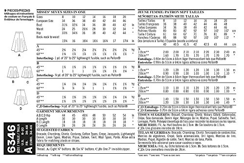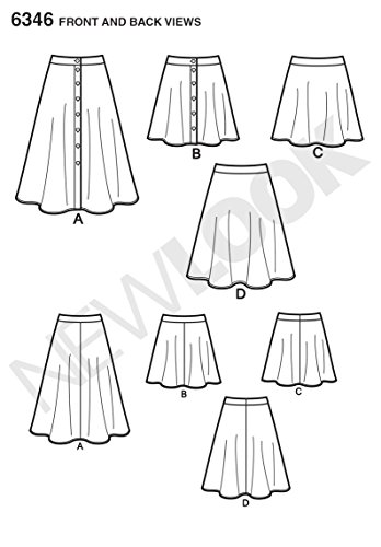 • Designed and manufactured in the U.S.A Instructions are written in English and Spanish Available in size: a (8-10-12-14-16-18-20) This easy, flared full skirt pattern for miss includes midi length or mini skirt with button front closure and knee length or mini length skirt with back zipper.