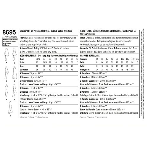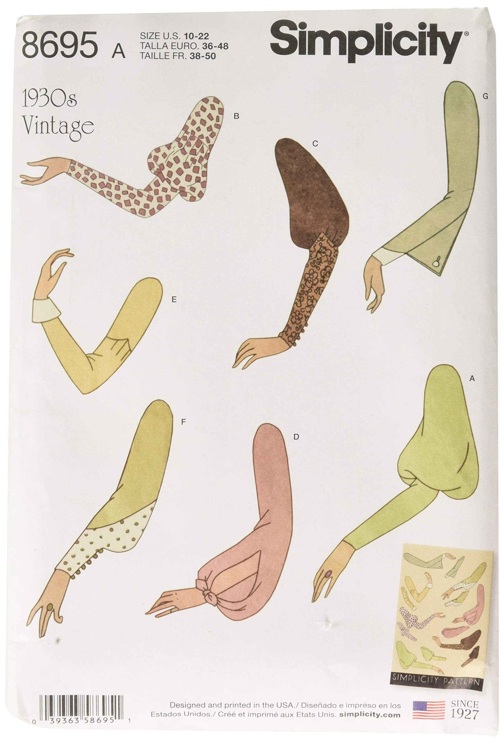 • A (10-12-14-16-18-20-22) fits Bust 32½” – 40″, Waist 24½” – 32″, Hips 34½” – 42″ Simplicity vintage pattern circa 1930 features a set of Misses’ sleeve patterns in 7 different styles Sewing pattern made in USA This Simplicity vintage pattern circa 1930 features a set of Misses’ sleeve patterns in 7 different styles with silhouettes and a guide to match sleeves to bodice patterns.