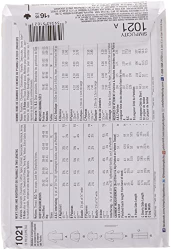 • Simplicity Pattern includes instructions for (4) different looks, with top and bottom options in varying sleeve lengths and (1) men’s nightshirt.