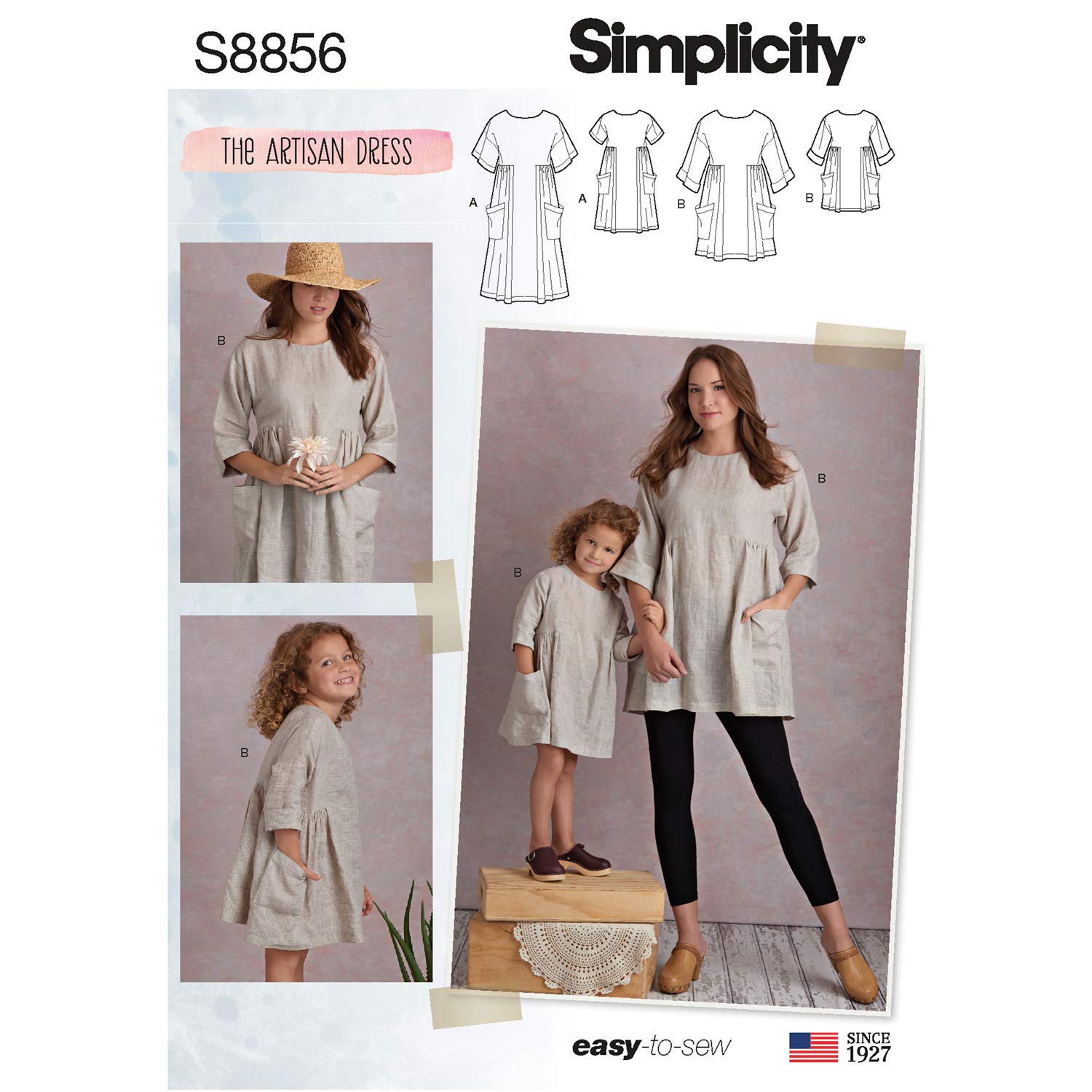 • A (3 – 8/XS-XL) Mother daughter easy to sew dresses and tunics.