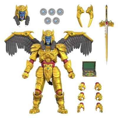 • POWER RANGERS SUPER7 ACTION FIGURE: The powerful Goldar from the classic TV series “Mighty Morphin Power Rangers” joins the Super7 ULTIMATES! action toy figures lineup ADVENTURE-READY ACCESSORIES: This action figure comes with interchangeable heads, hands, and sets of wings as well as a sword, five Badges of Darkness, and Power Coin box, allowing you to reenact iconic scenes from the classic 1990s TV show 8-INCH ACTION FIGURE: Goldar figure is 8″ tall, larger than the rest of the Power Ranger ULTIMATES! action figures lineup PREMIUM ACTION FIGURES: Highly articulated with premium detail and intricate sculpting, our ULTIMATES! action figure toys blur the line between action figures and works of art; Featuring ThunderCats, Mighty Morphin Power Rangers, Godzilla, and more COLLECTIBLE TOYS & FIGURES: From TMNT action figures and G.I.