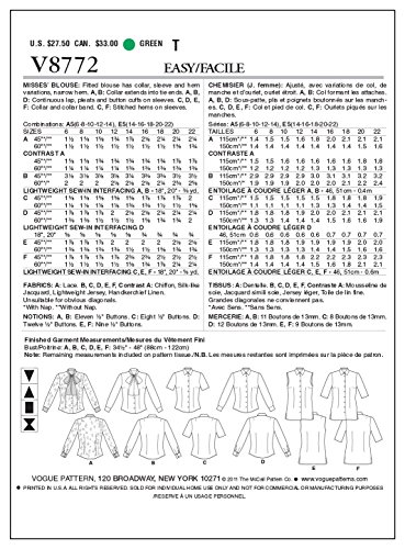 • Size: E5 (14-16-18-20-22) Includes pattern pieces and sewing instructions Made in the U.S.A by Vogue Patterns MISSES’ BLOUSE: Fitted blouse has collar, sleeve and hem variations, and narrow hem.